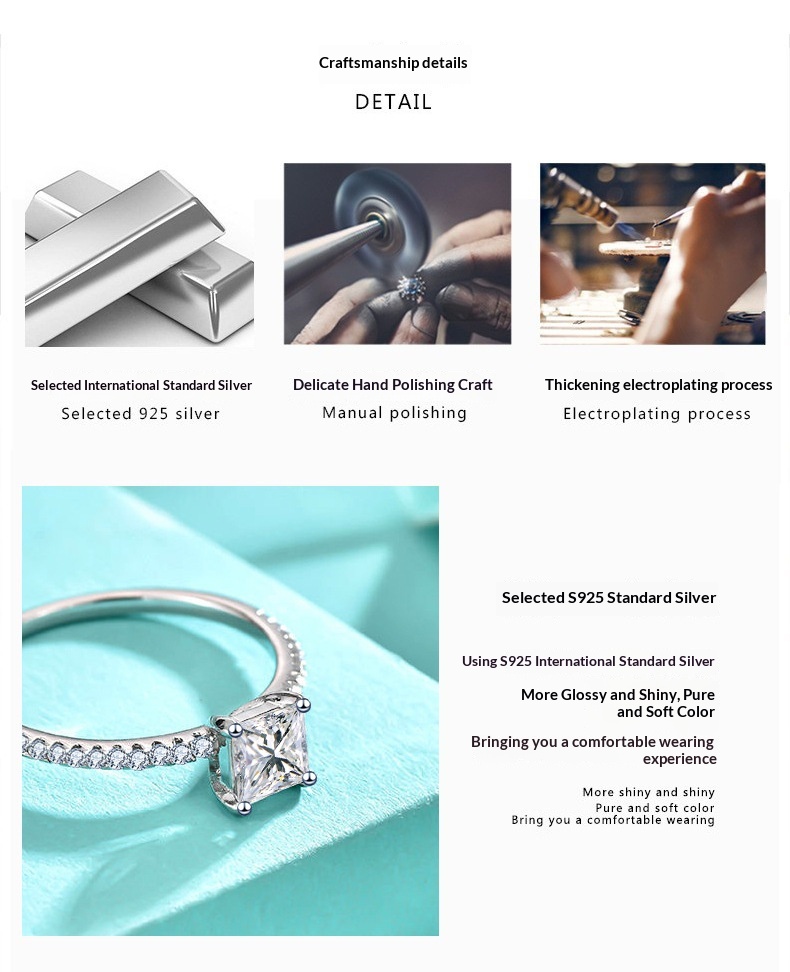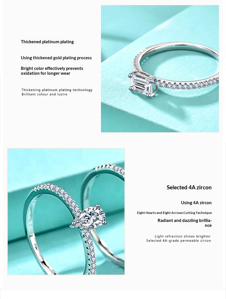 Fashion Square Rectangle Drop Zircon 925 Sterling Silver Ring