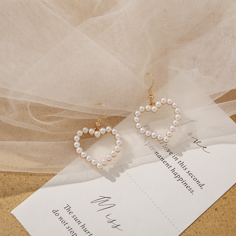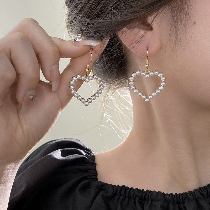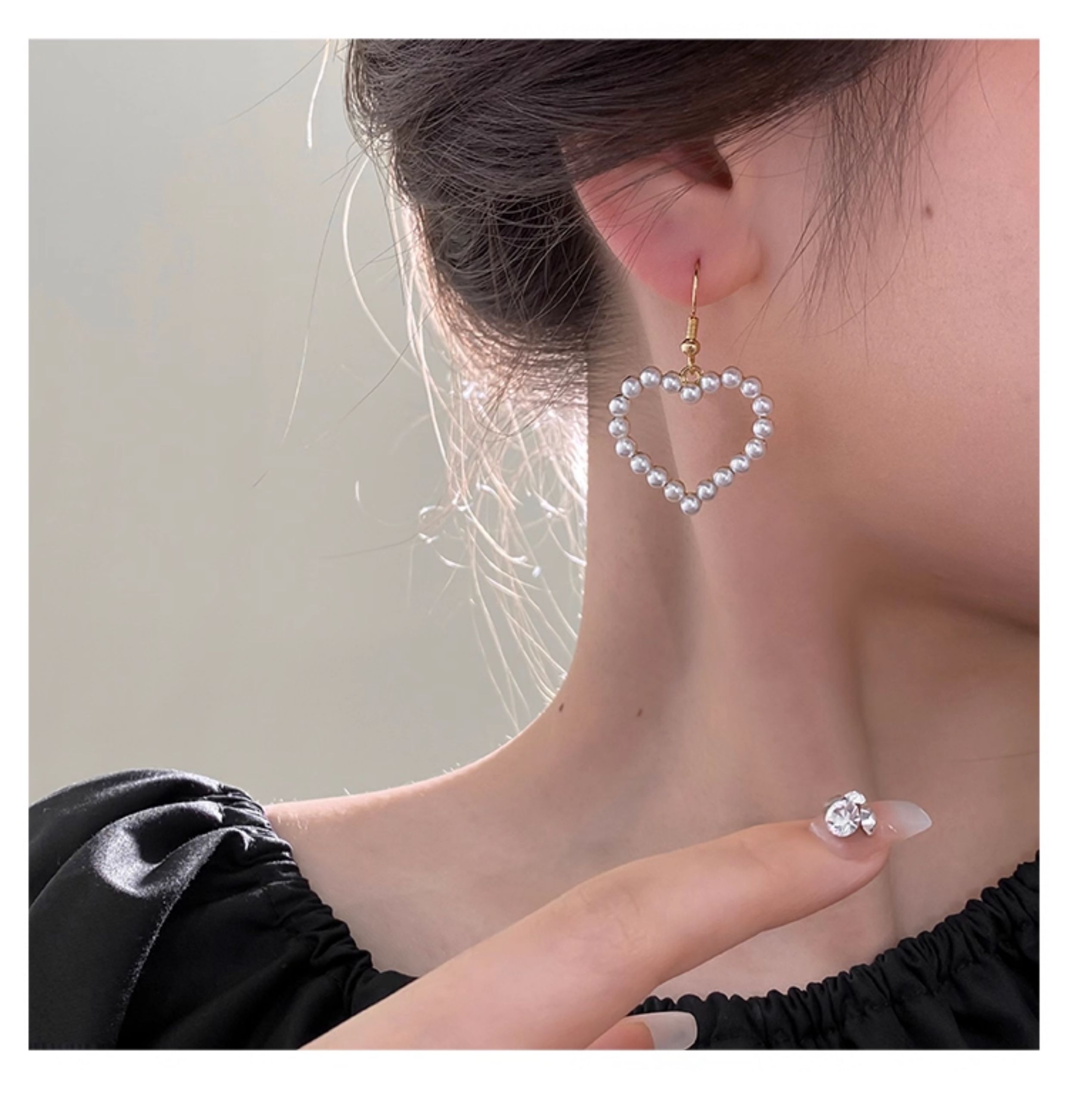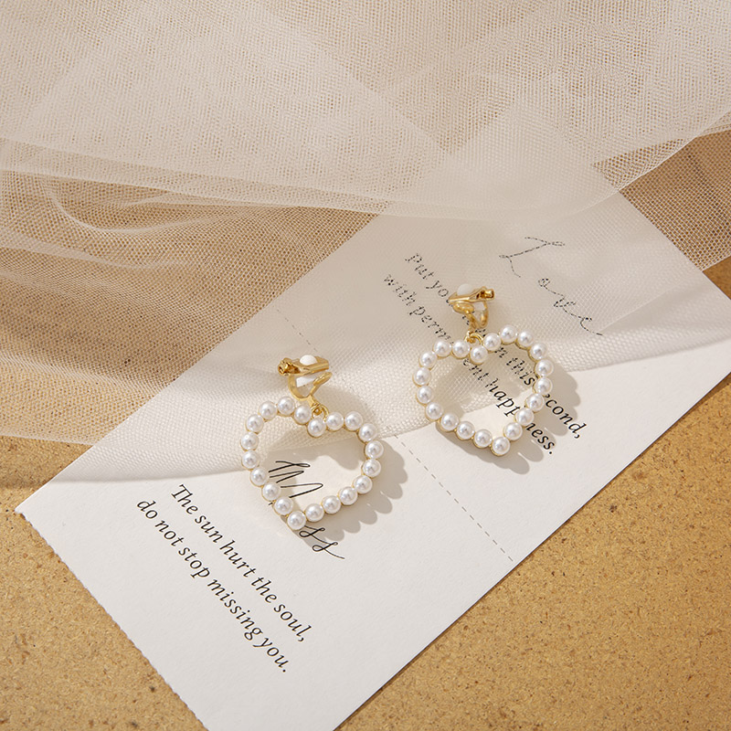 Fashionable And Personalized Earrings Without Ear Holes, Retro Round Face, High-end Feeling, Imitation Pearl Heart Earrings