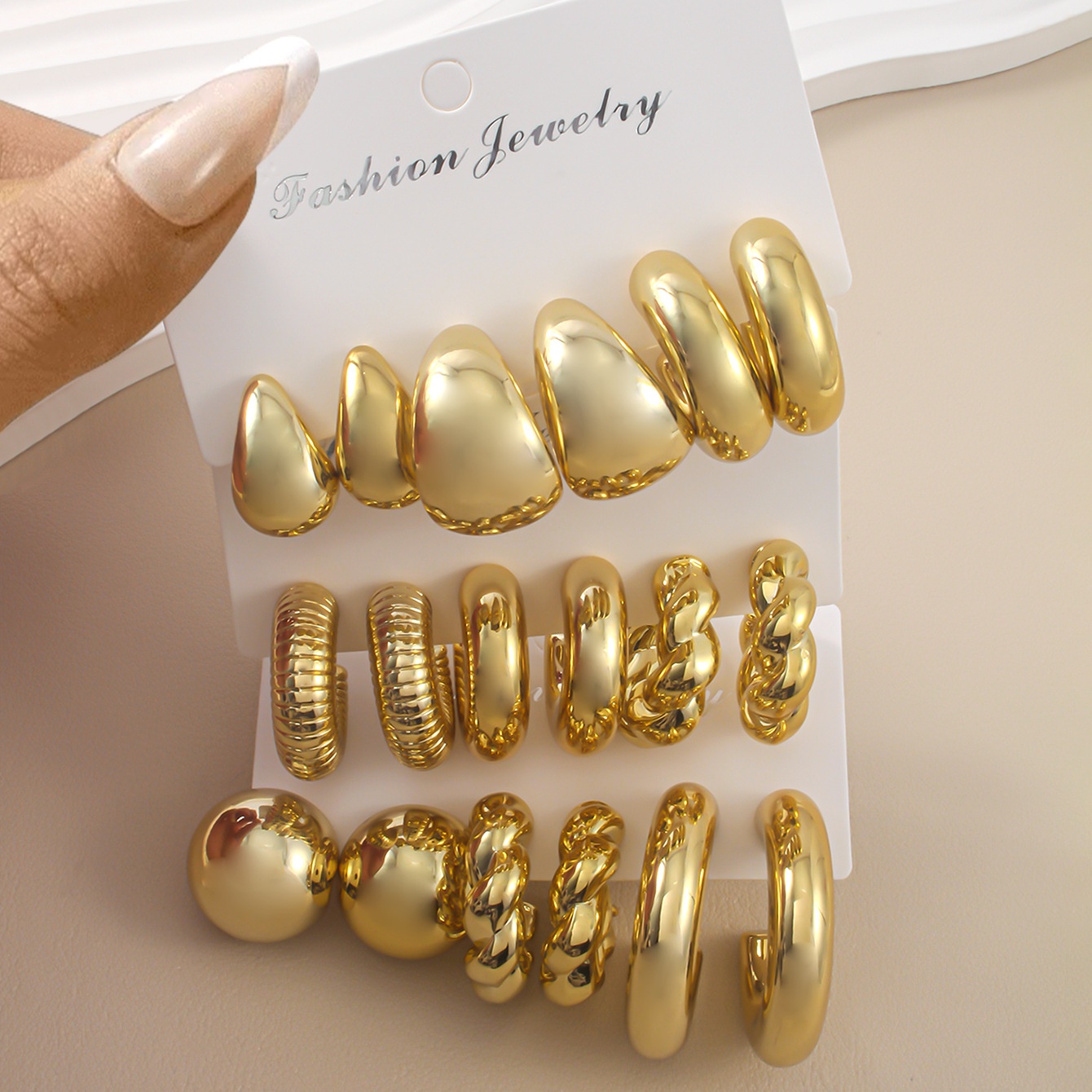 Color: 3 pairs of water droplets (gold), 3 pairs of water droplets (silver), 3 pairs of water droplets (black)