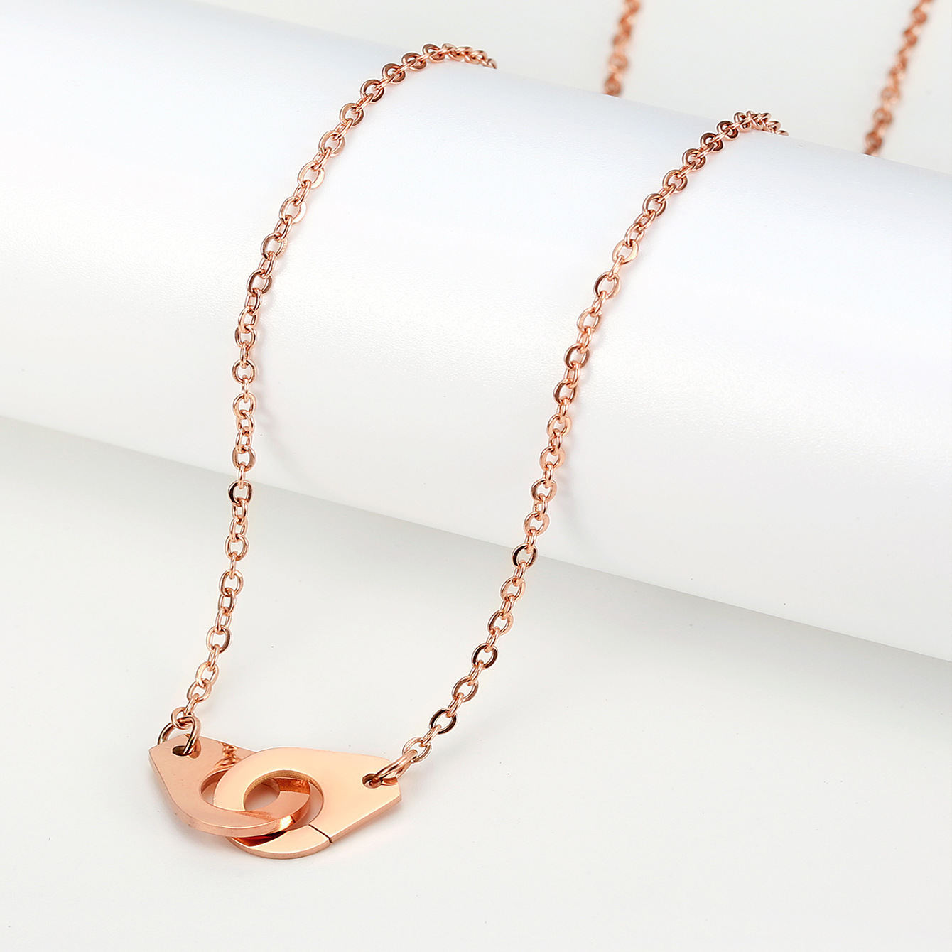 Minimalist Double-Ring Handcuff Pendant Necklace, Personalized Hip-Hop Style