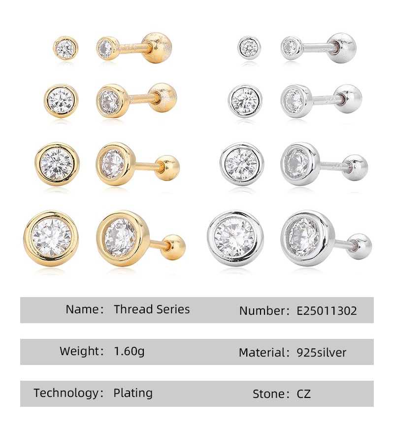 S925 Sterling Silver Threaded Earrings With Zircon Inlays