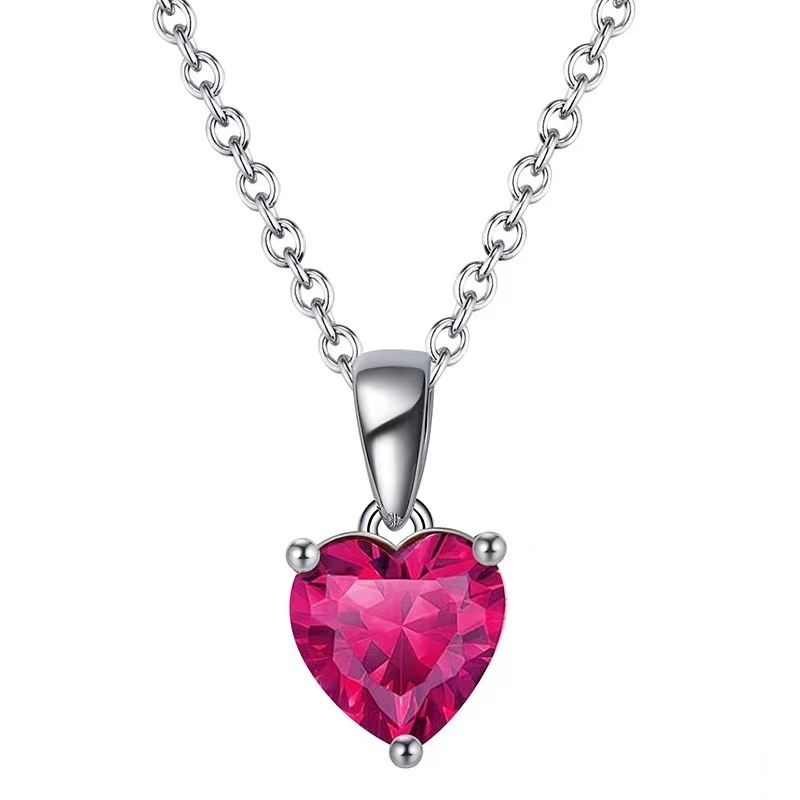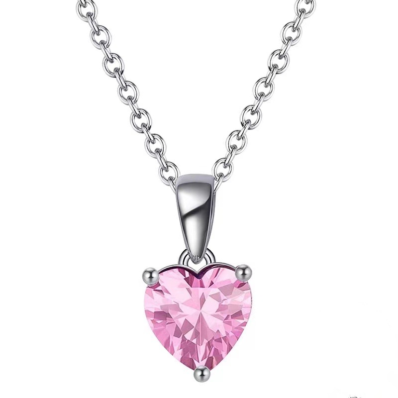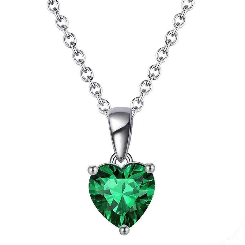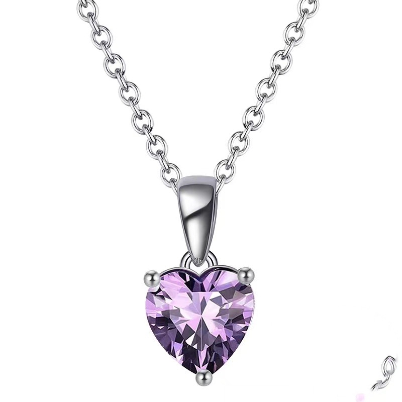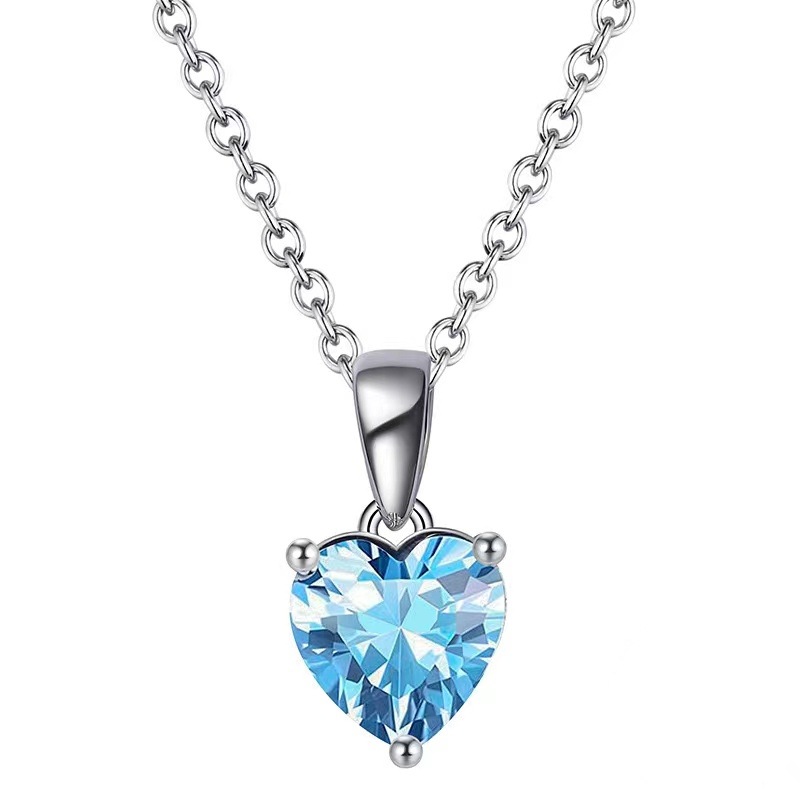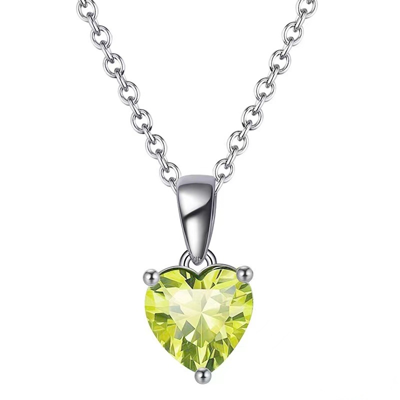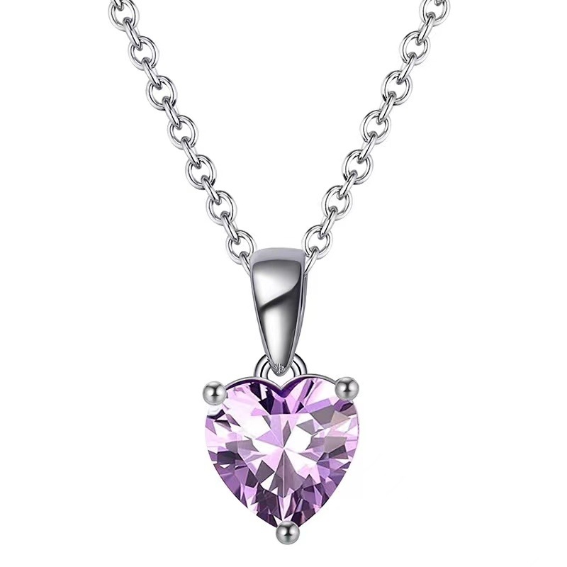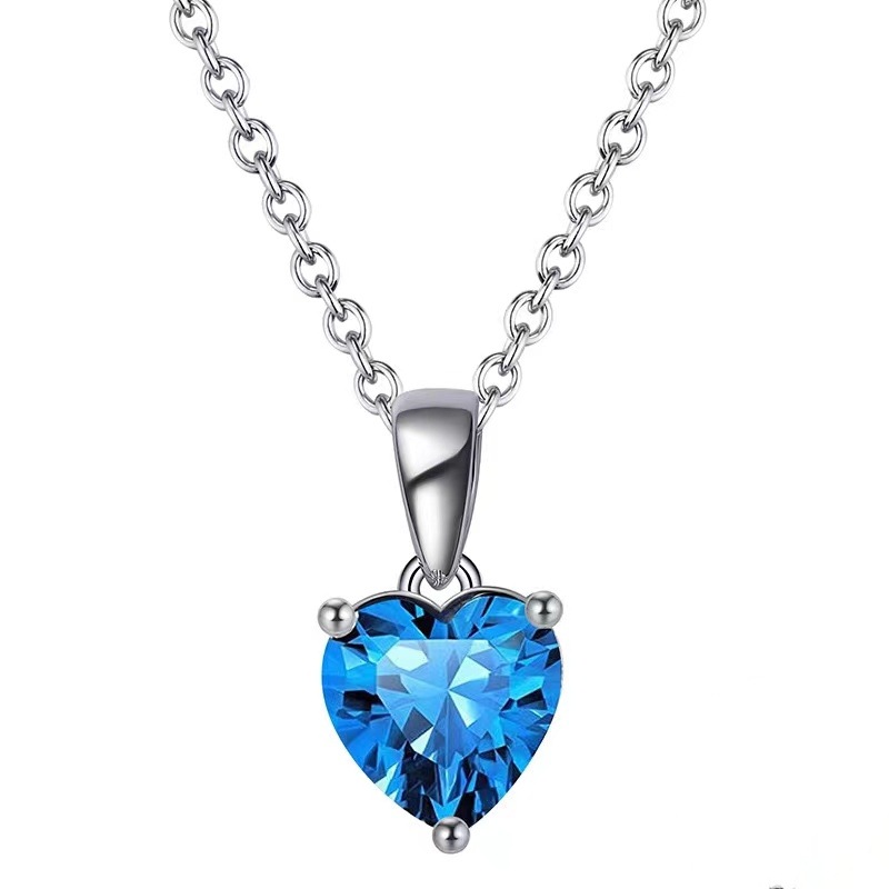 Women's Colorful Heart Gemstone Necklace, Birthday Stone 3A Zircon