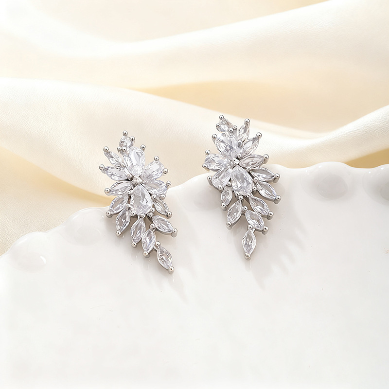 Zircon Leaf Earrings For Women